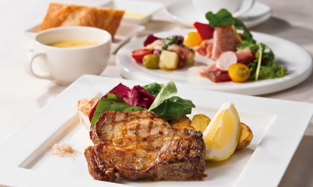 | 【メインチョイス】 本日の鮮魚料理 または 本日のお肉料理 または 黒毛和牛のタリアータ(+¥2,000) |